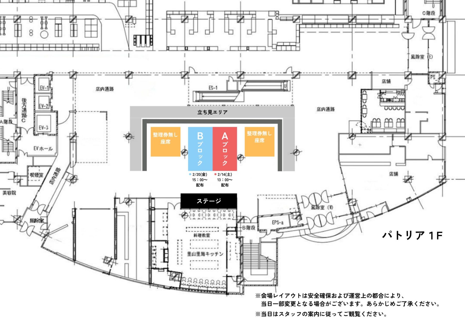 ※両ブロックともステージ前方から座席をご用意しており、事前配布・当日配布いずれの場合も、観覧条件に差はありません。