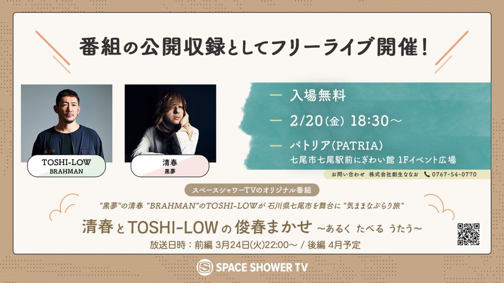 スペースシャワーTVオリジナル番組の公開収録として、七尾駅前「パトリア」にてフリーライブの開催が決定しました!